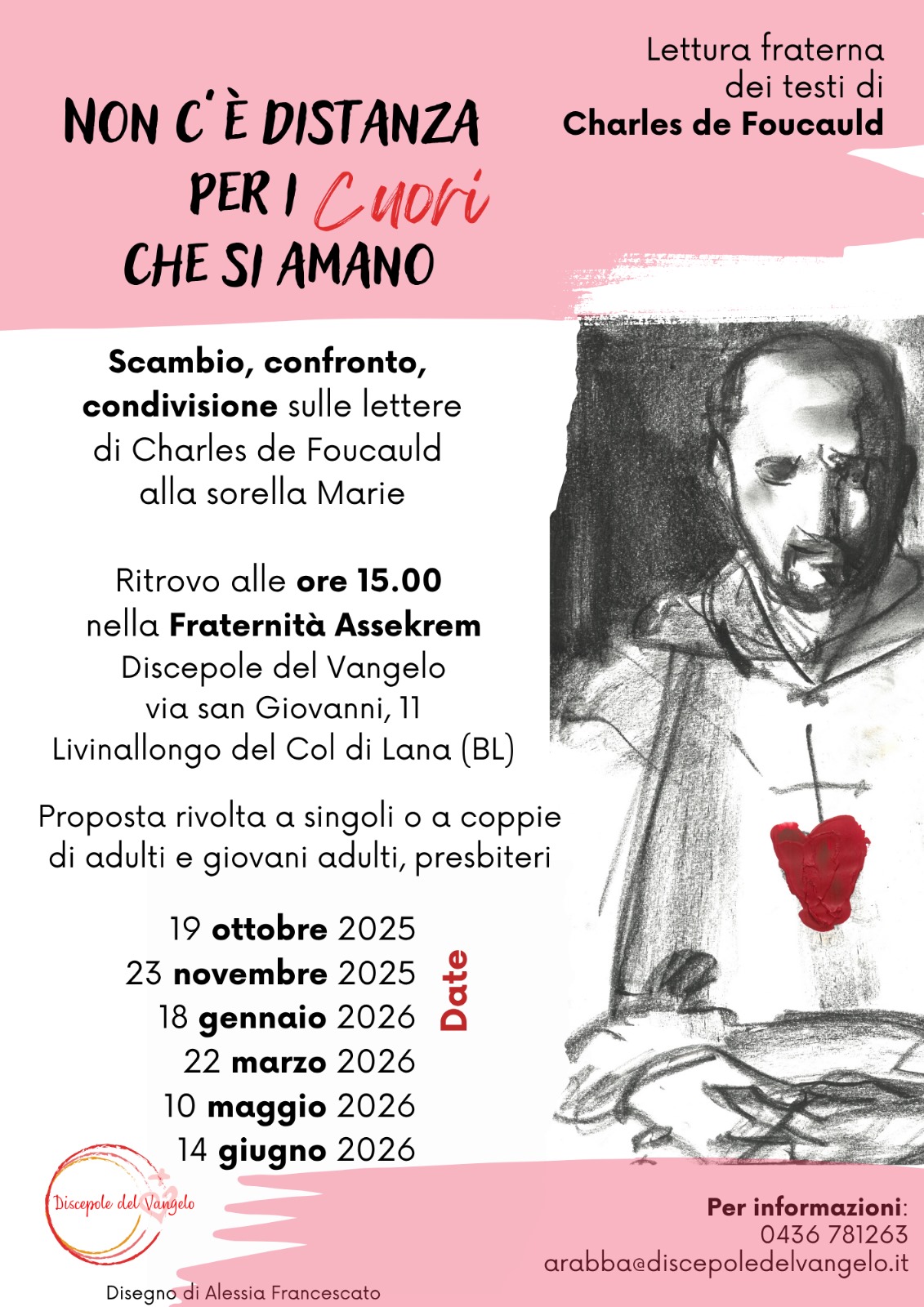 Alla luce dell’esperienza di Charles de Foucauld, le sorelle Discepole del Vangelo propongono un weekend spirituale rivolto a laici, coppie, religiosi/e e sacerdoti sul tema della speranza: come sperare nella sofferenza?